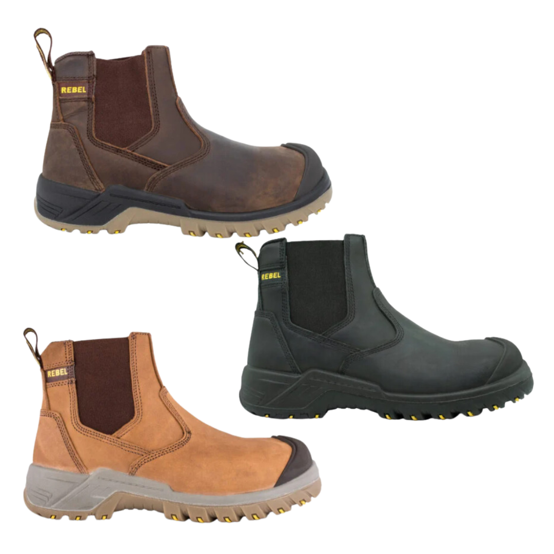 The Crazy Horse is a premium slip-on work boot, offering maximum protection and style with a 200J Steel toe cap, toe bumper for added scuff protection.