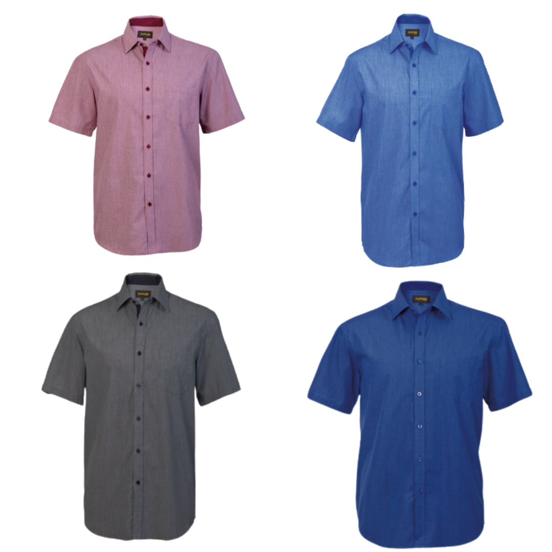 Mens Madison Lounge Short Sleeve is made from 65/35 Poly-Cotton fabric. The features include contrast buttons and chest pockets.