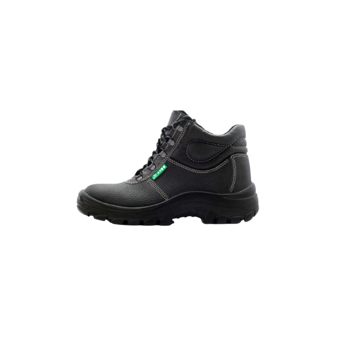 Durable safety boot with genuine leather upper. Double density PU sole. Heat resistant up to 95 degrees Celsius. Antistatic.