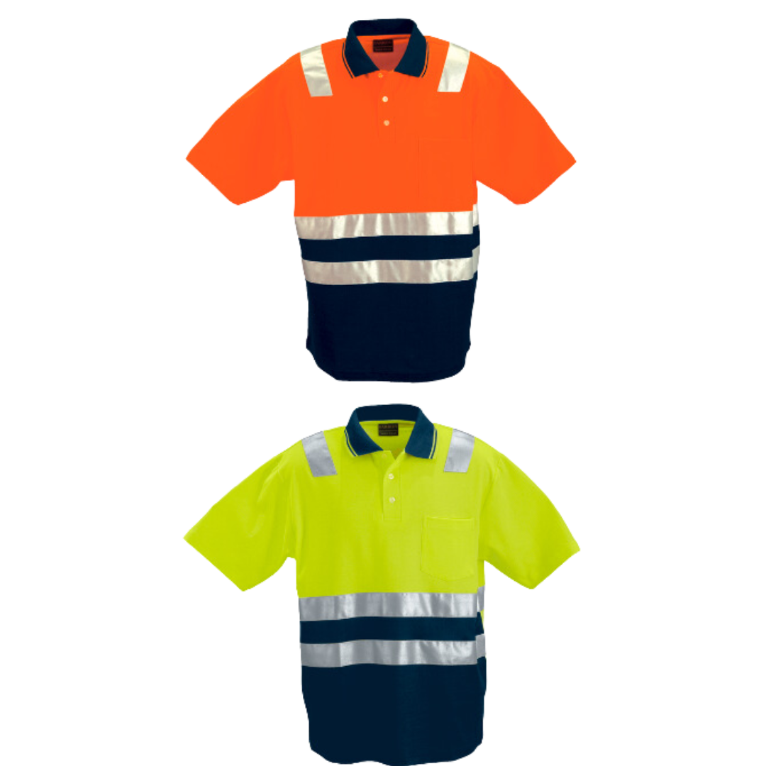 The Patrol Golfer is a polyester and cotton bonded short sleeve golf shirt. Features include a three button placket with a striped knitted collar.