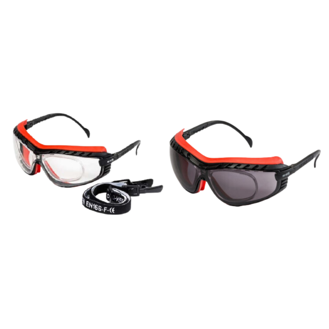 Used as a spectacle or a goggle all in one! · Prescription lens inner attachment · Polycarbonate mono lens & soft rubber face seal.